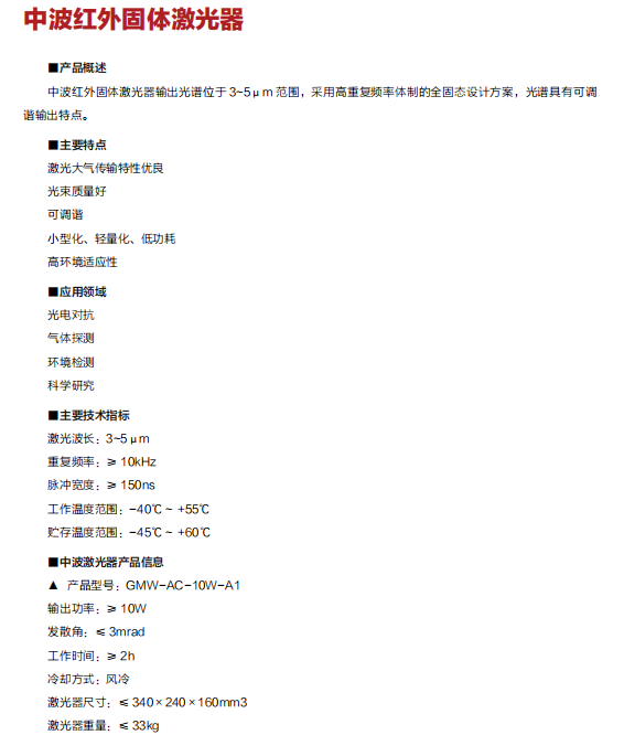 中波紅外固體激光器