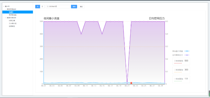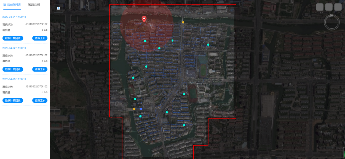 智慧水務雲平臺可以通過先進的漏損定位算法和DMA的夜間最小流量,能夠及時發現漏損並精準提供漏損位置信息,自動判斷、分析各DMA是否泄漏以及當前泄漏水平,爲制定檢漏方案提供依據。在出現停斷水或爆管等突發事件時,通過智慧水務雲平臺的漏損定位,幫助實現排查縮小範圍,減輕一線工作人員排查難度,減少居民停斷水時間。