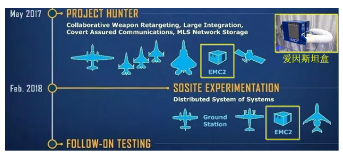 在SoSITE項目的最新試驗中,使用了臭鼬工廠開發的複雜組織體開放式系統架構(E-OSA)任務計算機版本2(EMC2),即所謂的“愛因斯坦盒”,如圖7所示。洛克希德·馬丁公司開發的E-OSA兼容了美空軍OMS標準。“愛因斯坦盒”可爲系統之間的通信提供了安全保護功能,在將相關能力部署到操作系統之前,“愛因斯坦盒”能夠確保快速而安全的實驗。“愛因斯坦盒”不僅是一個通信網關,它可被比作一部智能手機,能夠運行很多不同的應用程序,具備實現動態任務規劃、ISR以及電子戰的能力。